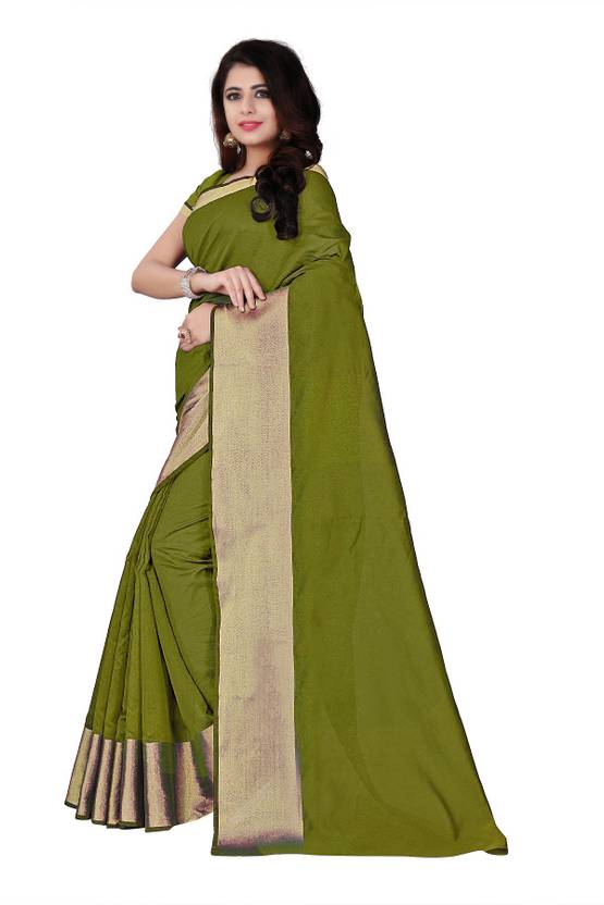 estrella fashion Solid/Plain Banarasi Silk Blend Saree (Dark Green)
