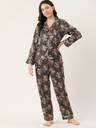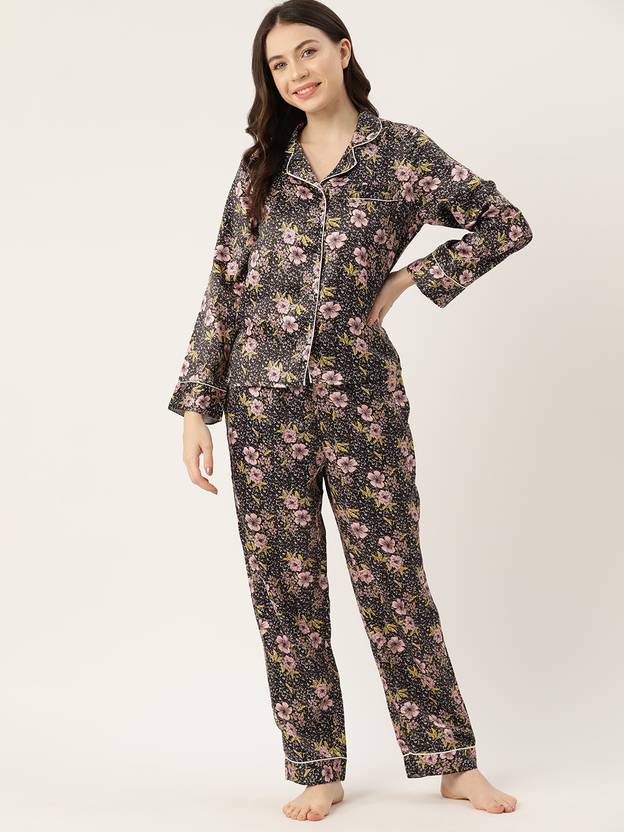 Girls Night Suit Set Black, Pink Printed