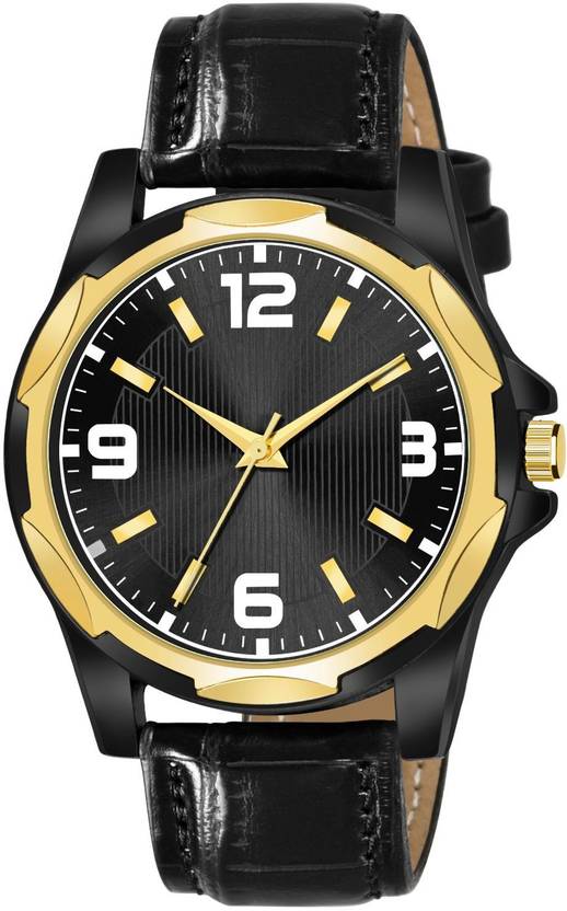 Analog Watch - For Men 8129 New Rich Look Gold Ring & Black Matt Finishing