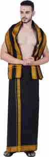 SRI BALAJI TEX RM TYPE BLACK GOLD JARI BORDER Solid Men Dhoti