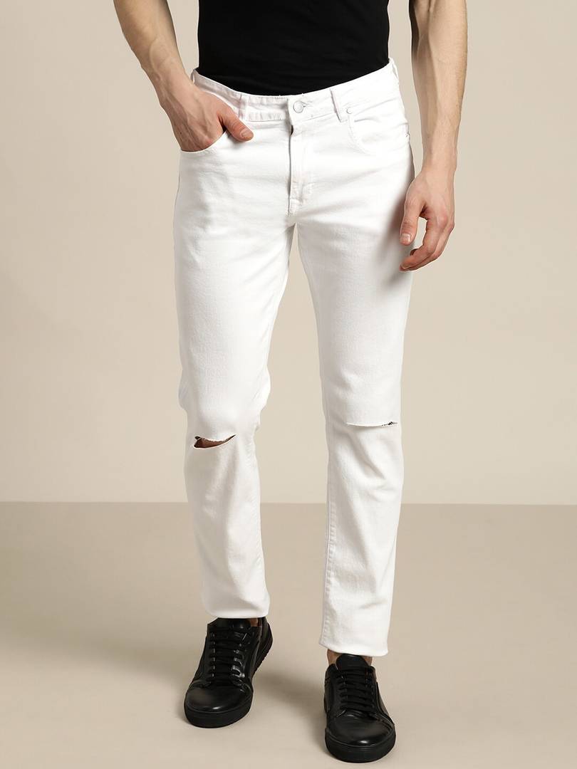 Light shade, no fade white jeansSlim fit, mid-riseSlash kneeStretchable5 pocketsButton closureZip flyLength: regular.