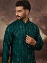 Men Embroidered Silk Blend Straight Kurta (Green)