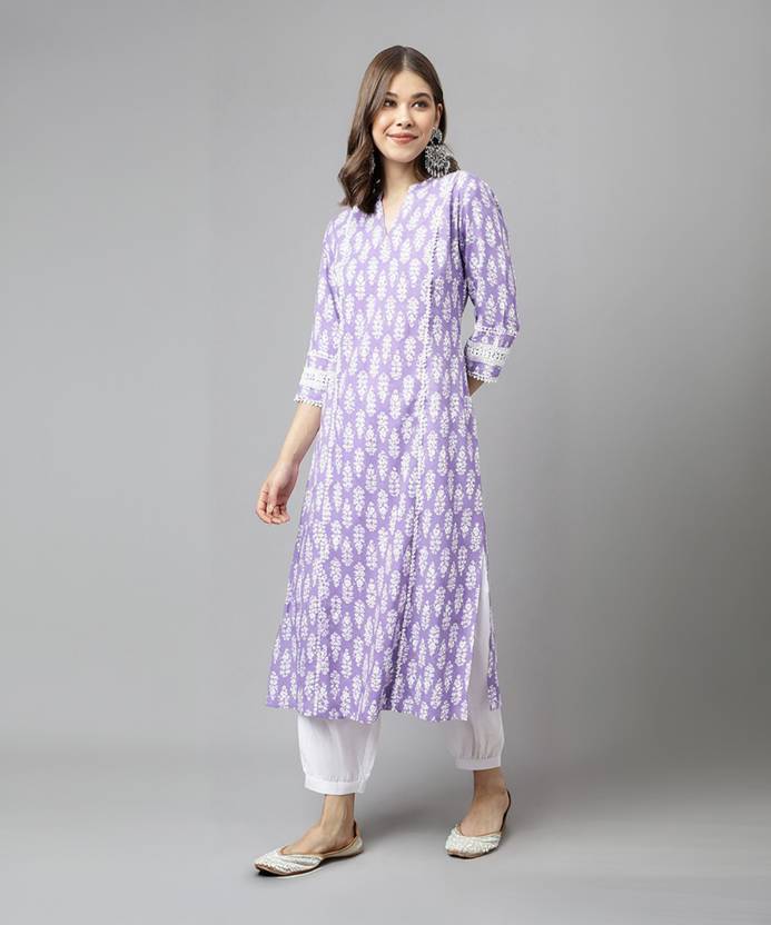 Ethnic Lady Women Printed Straight Kurta (Purple)