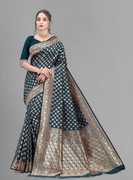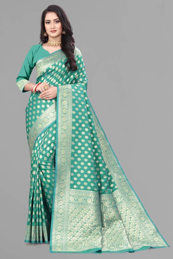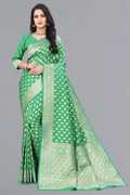 THE ETHNIC SAREE STUDIO Woven Kanjivaram Pure Silk Saree (Green)
