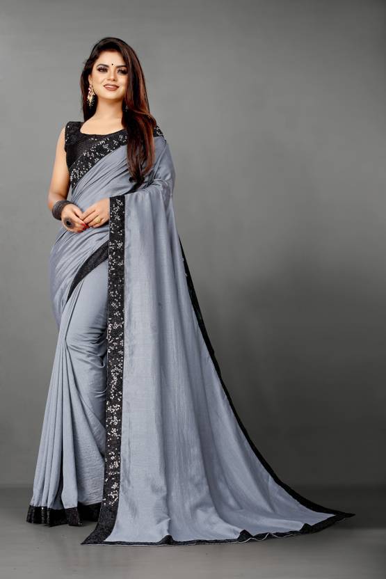 Ethnical Andaaz Solid/Plain Bollywood Art Silk Saree (Grey)