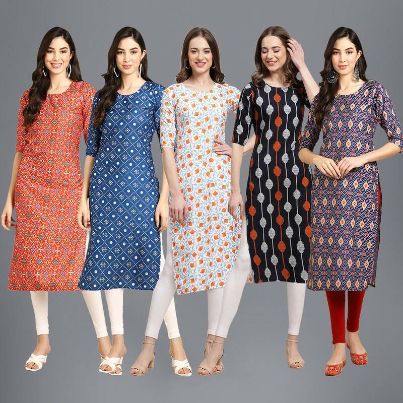 EthnicBasket Pack of 5 Women Printed Crepe Straight Kurta (Multicolor)