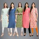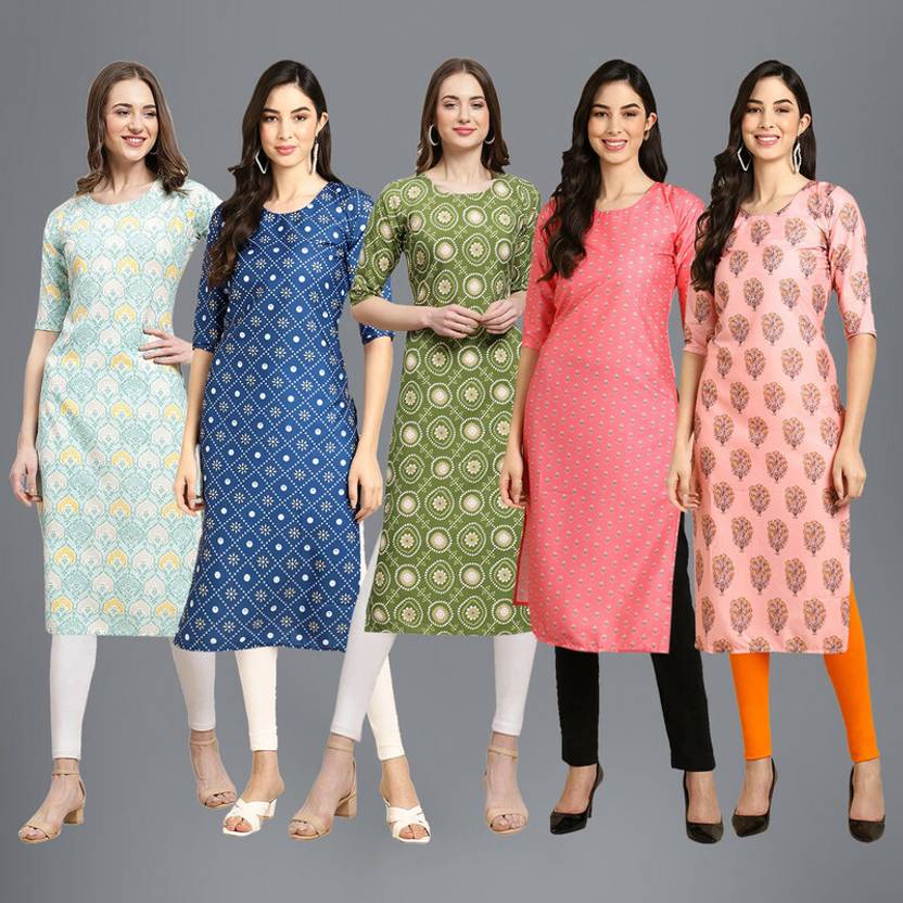 EthnicBasket Pack of 5 Women Printed Crepe Straight Kurta (Multicolor)