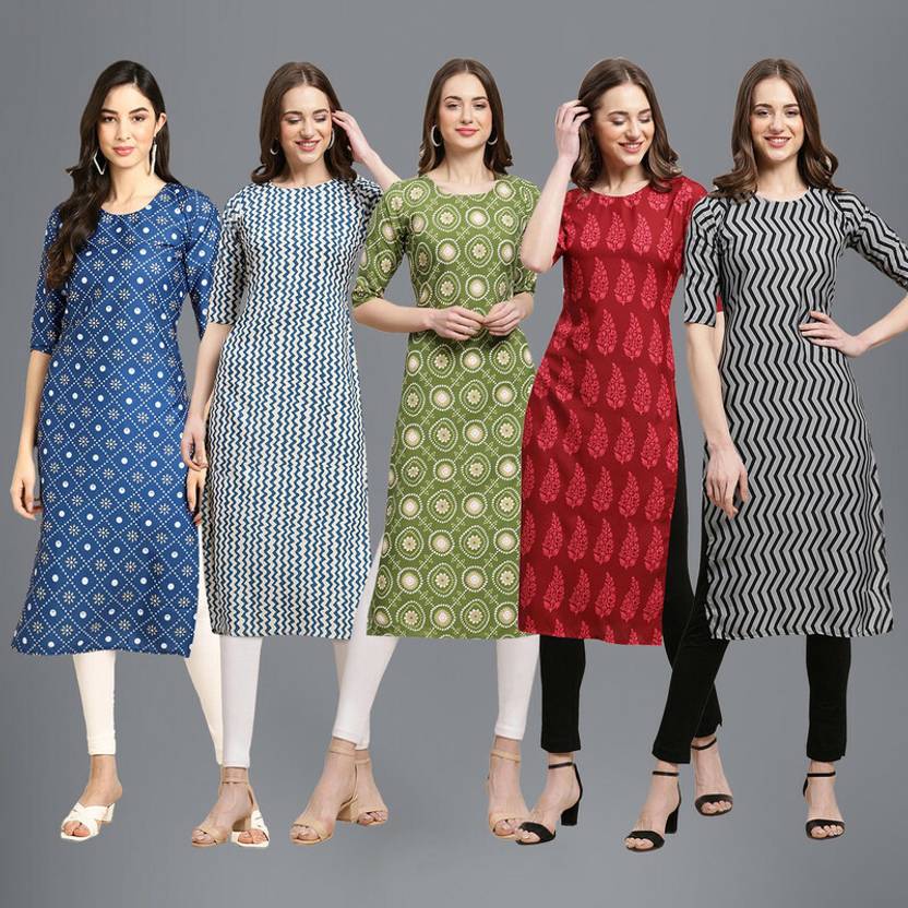 EthnicBasket Pack of 5 Women Printed Crepe Straight Kurta  (Multicolor)