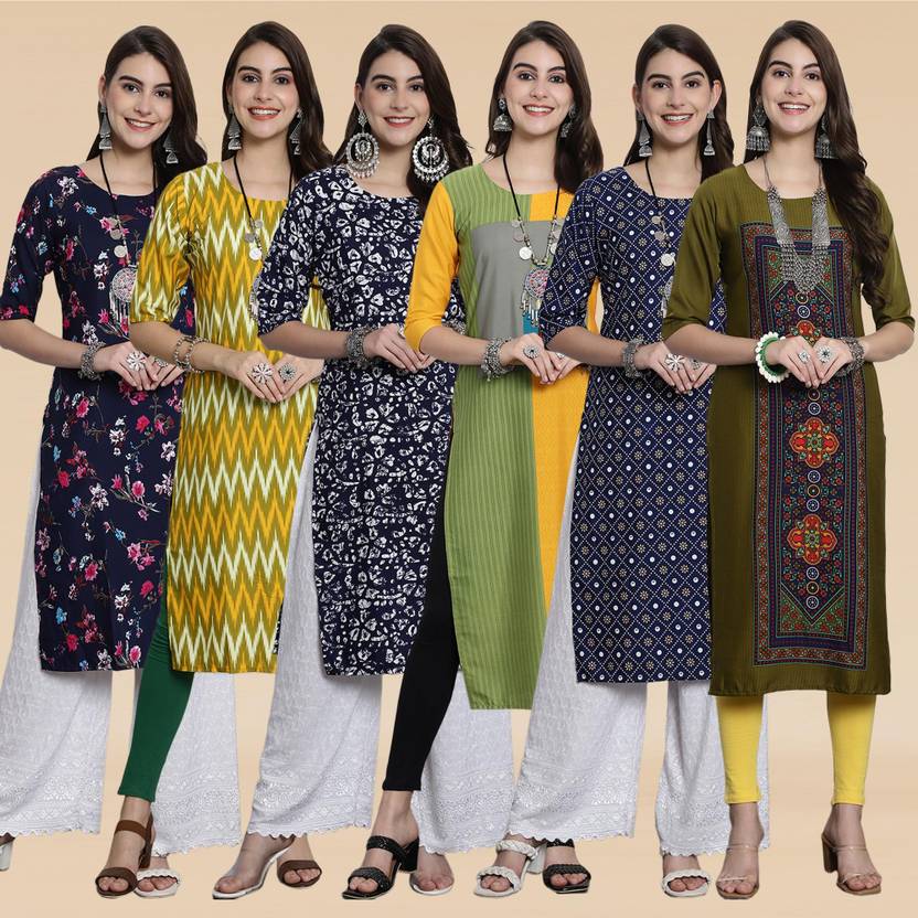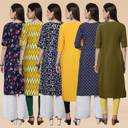 Pack of 6 Women Printed Crepe Straight Kurta (Multicolor)