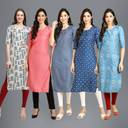 EthnicBasket Pack of 5 Women Printed Crepe Straight Kurta (Multicolor)
