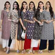 EthnicBasket Women Printed Straight Kurta (Multicolor)