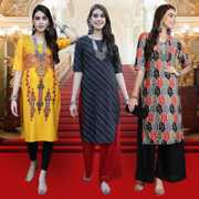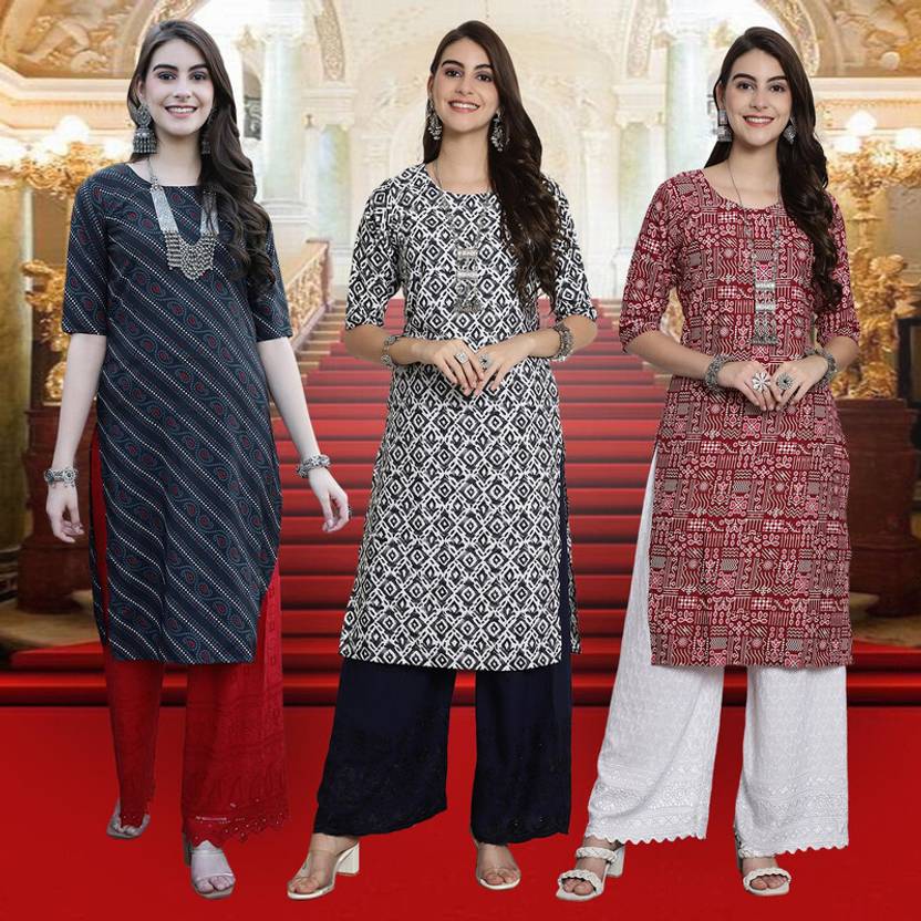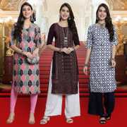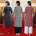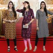 EthnicBasket Pack of 3 Women Printed Crepe Straight Kurta  (Multicolor)