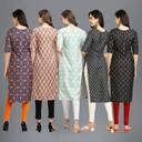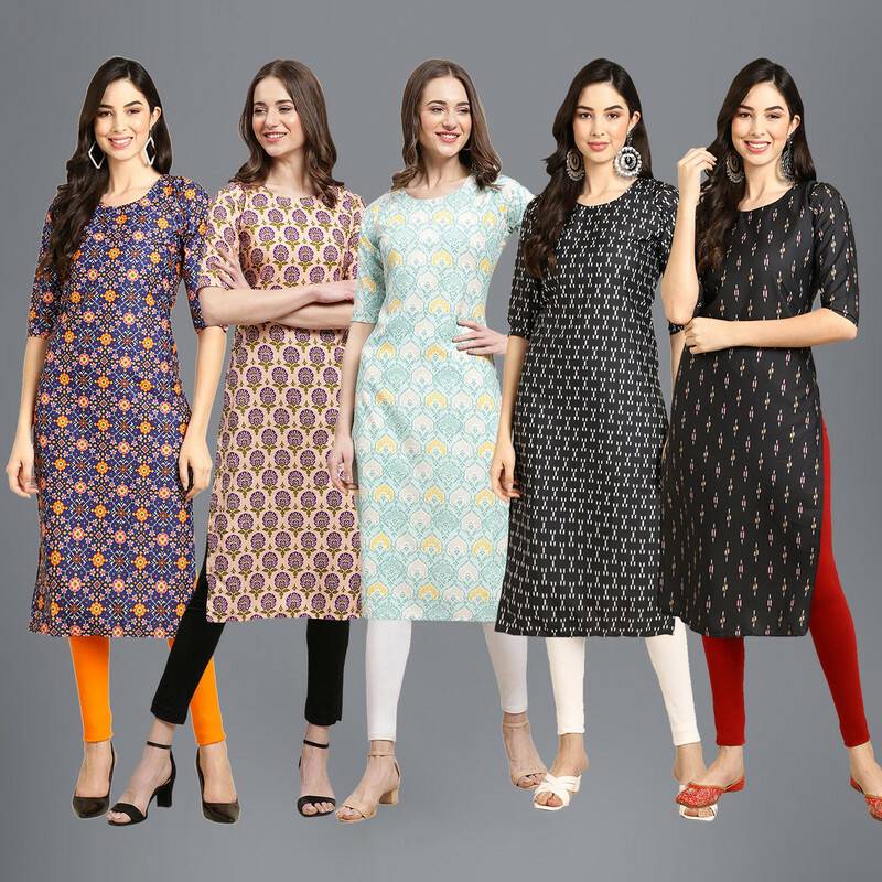EthnicBasket Pack of 5 Women Printed Crepe Straight Kurta (Multicolor)