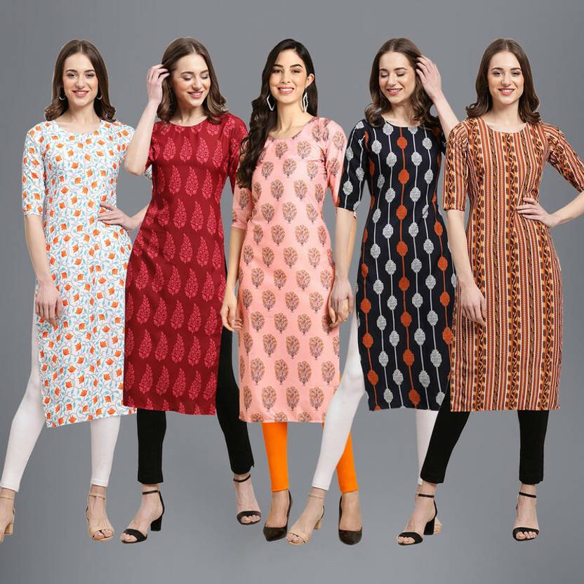 EthnicBasket Pack of 5 Women Printed Crepe Straight Kurta (Multicolor)