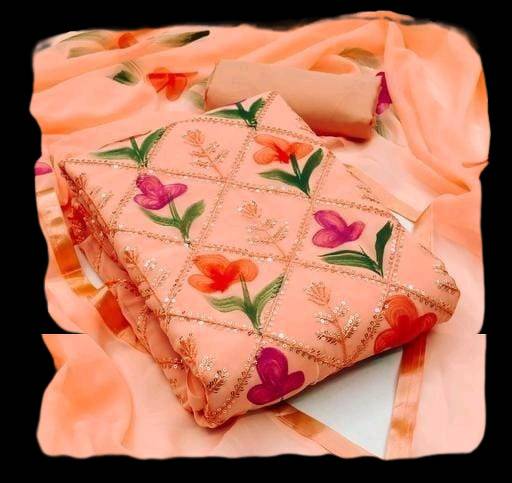 New Hit GEORGETTE Sequined Unstiched Suits WITH PRINTED DUPPATTA Womens Trending Fashion Georgette Suit Double Georgette Sequence Work Suit With Heavy 4MTR Bottom Work Heavy Fancy Top Work And Fancy Duppata Sequence Work With Latkans GEORGETTE Suit , Party Wear Suit , Best Deal Suit , New Arrivals , Work Wear Suit , Fresh Collection , Sharara Suit , Engagement Womens Suit , Sangeet Womens Suit , Wedding Womens Suit , Daily Wear Suit , HaldiFunction Wear Suits All Occastions Wear Suit