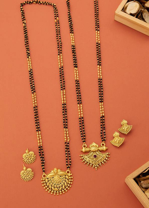 wo mangalsuta with two pair of earrings SIZE : 24" inch COLOR : gold hook type : "S" hook PACKAGING : your order packed in plastic box for safety QUALITY : every produced packed after quality check NOTE : you are buying from Ethnic Embrace- one of the trusted brand in online market