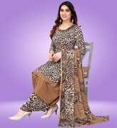 Flaunt a new ethnic look with this dress material. This Italian Leon Crepe suit is beautifully adorned with Print work comes along with solid Italian Leon Crepe bottom and martina chiffon dupatta makes it appear more adorning. Women can buy this suit to wear for their upcoming festivals, homely functions, parties, kitties, weekend get together. Get this unstitched suit stitched according to your fit and comfort. Team it with stylish accessories to make your looks more beautiful. Note:- The actual product may differ slightly in color and design from the one illustrated in the images when compared with computer or mobile screen.
