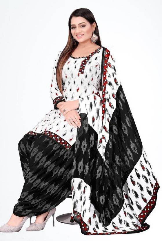 Flaunt a new ethnic look with this dress material. This Italian Leon Crepe suit is beautifully adorned with Print work comes along with solid Italian Leon Crepe bottom and martina chiffon dupatta makes it appear more adorning. Women can buy this suit to wear for their upcoming festivals, homely functions, parties, kitties, weekend get together. Get this unstitched suit stitched according to your fit and comfort. Team it with stylish accessories to make your looks more beautiful. Note:- The actual product may differ slightly in color and design from the one illustrated in the images when compared with computer or mobile screen.