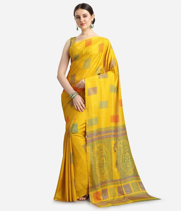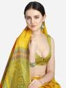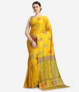 Ethnic Junction Printed Kalamkari Silk Blend Saree (Yellow)