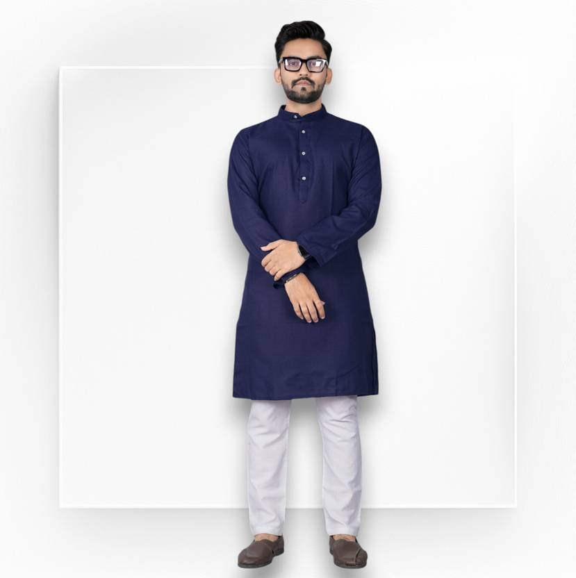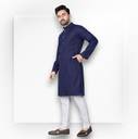 FASHIONPARROT Men Solid Cotton Blend Straight Kurta (Dark Blue)