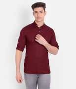 LYPLO Men Solid Cotton Blend Straight Kurta  (Maroon)