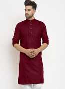 LookMakers Men Solid Cotton Blend Straight Kurta  (Maroon)