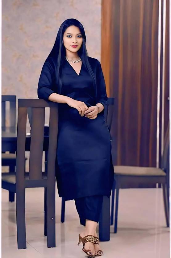 Elevate your wardrobe with this timeless black kurta and pant set from ETHNOOR Made from soft satin cotton, it offers all-day comfort with a touch of luxury. The V-neck and straight silhouette add elegance, making it perfect for work or casual wear.