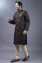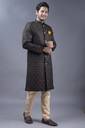 Ethzy completely traditional Indian design, this indo western sherwani is handmade from the absolute finest of Cotton silk and feels as light as air to treat you to stylish luxury with each and every wear. Like traditional dress worn in India, this sherwani dress includes both a top and a bottom. A round collar neck keeps your chest cool. Loose fitting sleeves and slits along the sides allow for an easy fit and let air circulate freely through the garment. The pant included in this indo western outfit has a relaxed fit through the seat and legs for absolute comfort. Loose comfortable fitting makes it a great wear. This simple sherwani is worn in both summer and winter. Indo western outfits like this is traditionally worn in every festivals and special occasions. The ways that you can wear this luxurious designer sherwanis are endless you can mix and match the pieces with other things in your wardrobe.