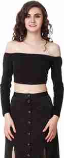 ETICO Casual Regular Sleeves Solid Women Black Top