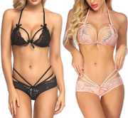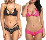 Lace Lingerie Bikini Set (Bra-Panty Set) for Honeymoon, Wedding Night, Bedroom, Special nights (FREE SIZE - One Size fits most, Bust : 28 to 38 inch , Waist : 28 to 34 inch)