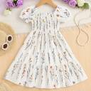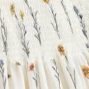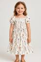 Add charm to your little girl’s wardrobe with this delightful floral smocked dress. Crafted in a soft white fabric adorned with vibrant yellow and red floral prints, this dress features a fully smocked bodice for a snug fit and stylish puff sleeves that add a trendy touch. The flared skirt with a ruffled hem makes it perfect for twirling and staying comfy all day. Ideal for summer outings, birthdays, and casual occasions.
