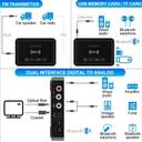 3 in 1 Bluetooth Transmitter Receiver Support blue tooth receiving (RX), blue tooth transmitter (TX), F M transmitter mode (87.5-108MHz). Equipped with HD LED display, working status and Blue tooth mode are clearly visible. With multi-function buttons, one-key switch mode, or play/pause music, simple operation. Built-in high-definition microphone, support w ireless music listening, hands-free call, navigation, let you drive more safely