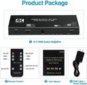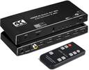 Etzin 4K 4x1 HDMI 2.0b HDMI Switch Audio Extractor EPL-1003H. 4×1 HDMI SWITCH WITH AUDIO EXTRACTOR: MICROWARE HDMI Switch box allows four HDMI sources to one HDTV/monitor/projector. solving your multiple HDMI devices issue. Simultaneously, it can also extract the audio embedded in HDMI source and converts it to 2 channel analog stereo output or 5.1 channel audio outputs via optical SPDIF/coaxial/ 3.5mm jack. Ideal solution for home theater, office, school, shopping center or hotel. 4K@60HZ ULTRA HD RESOLUTION: HDMI switch with audio out support max HDCP 2.2, HDMI2.0b, HDR 10, RGB8:8:8, Deep Color to 36bit, 4K@60Hz, also back compatible with 4K@30Hz, FULL HD 1080P@120Hz. Max Bandwidth of 18.5Gbps. which offers lossless high definition amazing video and audio quality. THREE AUDIO EDID SETTINGS: 2CH for 3.5mm jack or SPDIF stereo output; 5.1CH for SPDIF/coaxial Output, TV mode means output audio depends on the TV. Support Dobly True-HD, DTS-HD, AC3, DTS, DSD, Dobly Digital pass through (Please make sure your display that is compatible with those formats). AUTO-SWITCHING & MANUAL SWITCHING: 4 Ports HDMI switcher with audio output will automatically skip to the next port with a viable signal source. It comes with a built-in IR remote, it allows you to easily switch via IR remote from the comfort of your couch or manual switching via “switch” button on the device. TIPS: It will not allows auto-switch to the PS5/ X box due to current protection principle. WIDE COMPATIBILITY: This HDMI selector switch works effectively with the HDMI port of any other device such as PS4, PS5, DVD, Xbox one, TV Box, Blu-ray Player, Fire Stick, Laptop and HDTV etc. Just connect your HDMI devices and the power adapter and enhance your home theater experience with high-resolution video and audio. BUILD HOME THEATER! With this MICROWARE 4×1 HDMI switch audio extractor you can enjoy high-resolution video and audio at home or build your own home theater easily. ENJOY THE SIMPLE LIFE! This HDMI switch selector box allows four HDMI sources to one HDTV/ monitor/ projector. And can also extract the HDMI input Audio signal with SPDIF/ Coaxial/ 3.5mm audio out. WIDE COMPATIBILITY! It is best choice for trade show, conference room, bedding room, living room, backyard. Just connect your HDMI devices and the power adapter and then have a good time.