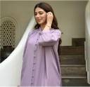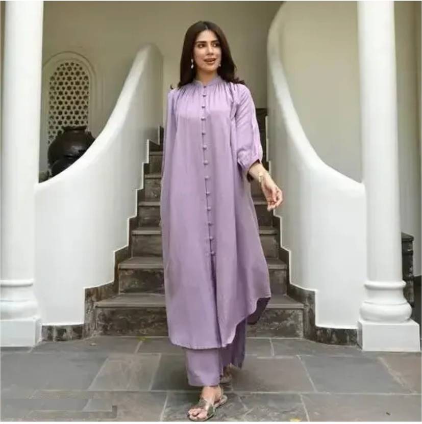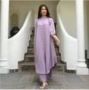 This captivating ensemble features a light purple long kurta with an alluring cut and delicate feminine ruffles adorning the collar. The balloon 3/4 sleeves and front buttons add an extra touch of charm. Paired with straight pants, this set exudes elegance and grace. Elevate your style and embrace the essence of harmony. Country of Origin : India Country of Origin: India