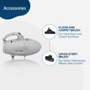 This vacuum comes with a flexible hose to help clean hard-to-reach areas. The multi-purpose brush helps in cleaning crevices, corners, table tops and window grills. Those who find it difficult to carry the vacuum cleaner around can just attach the shoulder strap to it.