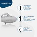 The Easy Clean vacuum cleaner has a powerful suction and blower function with an 800W motor. Attach the blower adapter when you want to use the blower end. It has an airflow of 14 litres/second. There are accessories which can be attached to the machine for better use.