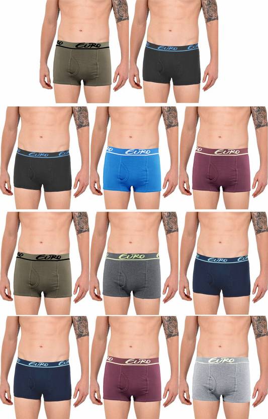 Euro Micra Cotton Plain Multicolor9 Mini Trunks - Pack of 11. Special pouch support to enhance your comfort. Stylish outer waistband with Euro logo. Offers standard fit with complete coverage on both sides. Minimalistic, yet fashionable.