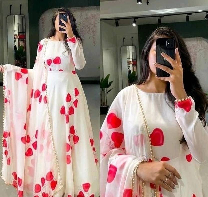 New Trendy georgette with digital Printed Gown and Dupatta Set For Women