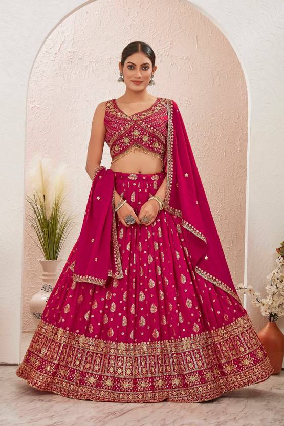 Embroidered Stitched Lehenga Choli (Pink)