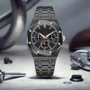 At the base of the dial, this wristwatch boasts a stunning chequered dial design that adds visual interest and sophistication. The chequered pattern enhances the overall appearance of the watch, creating a striking contrast against the main dial and subdials. The intricate design adds depth and texture to the watch face, elevating its aesthetic appeal.