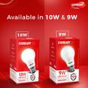 Eveready 10W LED Bulb, designed to deliver exceptional brightness and energy efficiency. With a high lumen output, this bulb ensures maximum illumination while consuming minimal energy. The cool Day Light effect (6500K) creates a refreshing and natural ambiance, making it ideal for bedrooms, kitchens, lobbies, and more. Built to last up to 15,000 hours, it offers long-term durability and reliability. Equipped with 4kV surge protection, it safeguards against voltage fluctuations, ensuring uninterrupted performance. The easy-to-use B22 base fits seamlessly into standard fixtures, while the flicker-free design provides eye comfort and reduces strain.