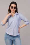 EVERSOFT FLOW Women Striped Casual Blue Shirt
