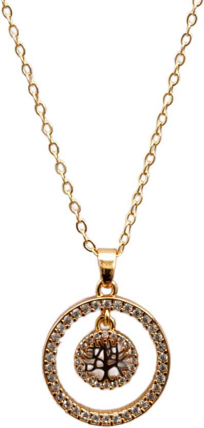 Important fancy Gold-Plated Tree of Life Necklace with Double Diamond Circles