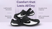 Featuring a construction made from EVA material, these men’s clogs offer exceptional lightness and flexibility for daily wear. The material’s cushioned structure supports natural movement while maintaining durability over time. Each step feels easy and relaxed, helping reduce strain during extended use.