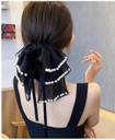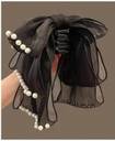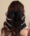 EvoNest Georgette Multi Layers Bow & Pearl Detailed Hair Clip (Multicolor)