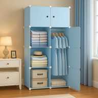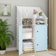 Evrum 8-Door 8-Shelf Plastic almirah for kids, almirah of clothes ,cupboard PC Collapsible Wardrobe (Finish Color - BLUE,Z3, DIY(Do-It-Yourself))