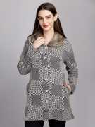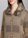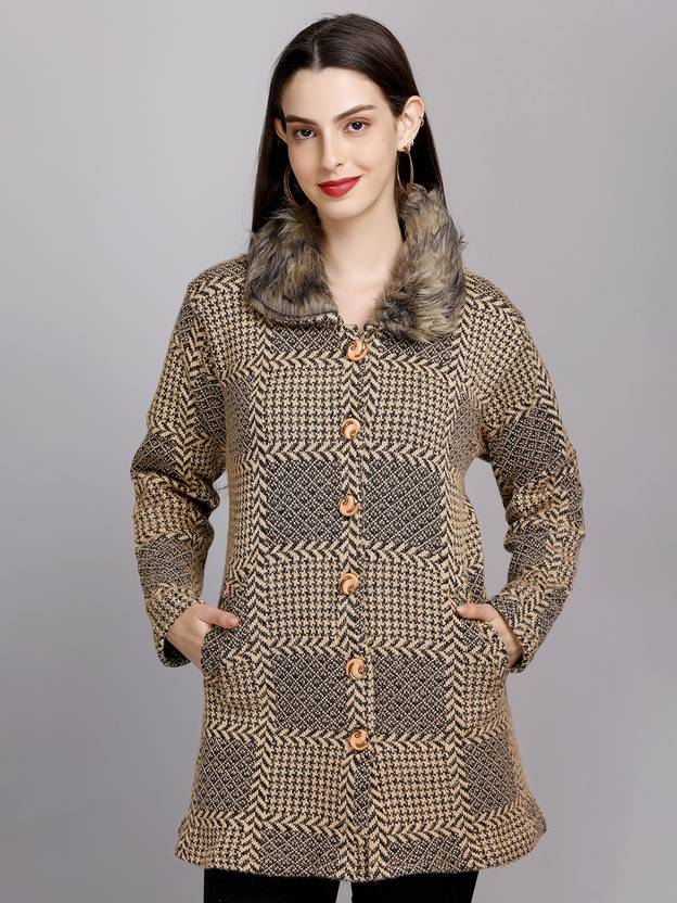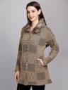 eWools Checkered Collared Neck Casual Women Gold Sweater