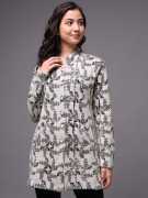 eWools Printed Collared Neck Casual Women Grey, Black Sweater