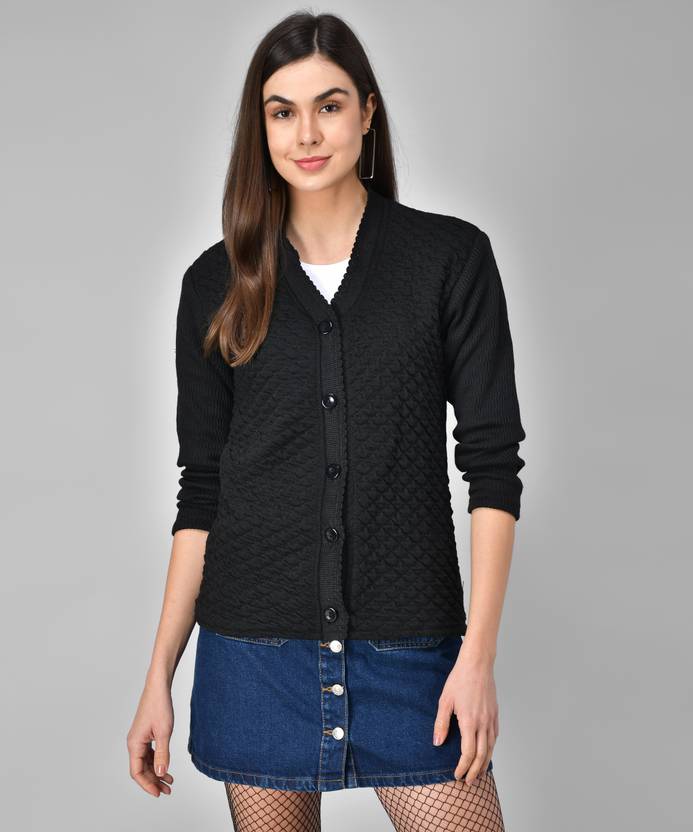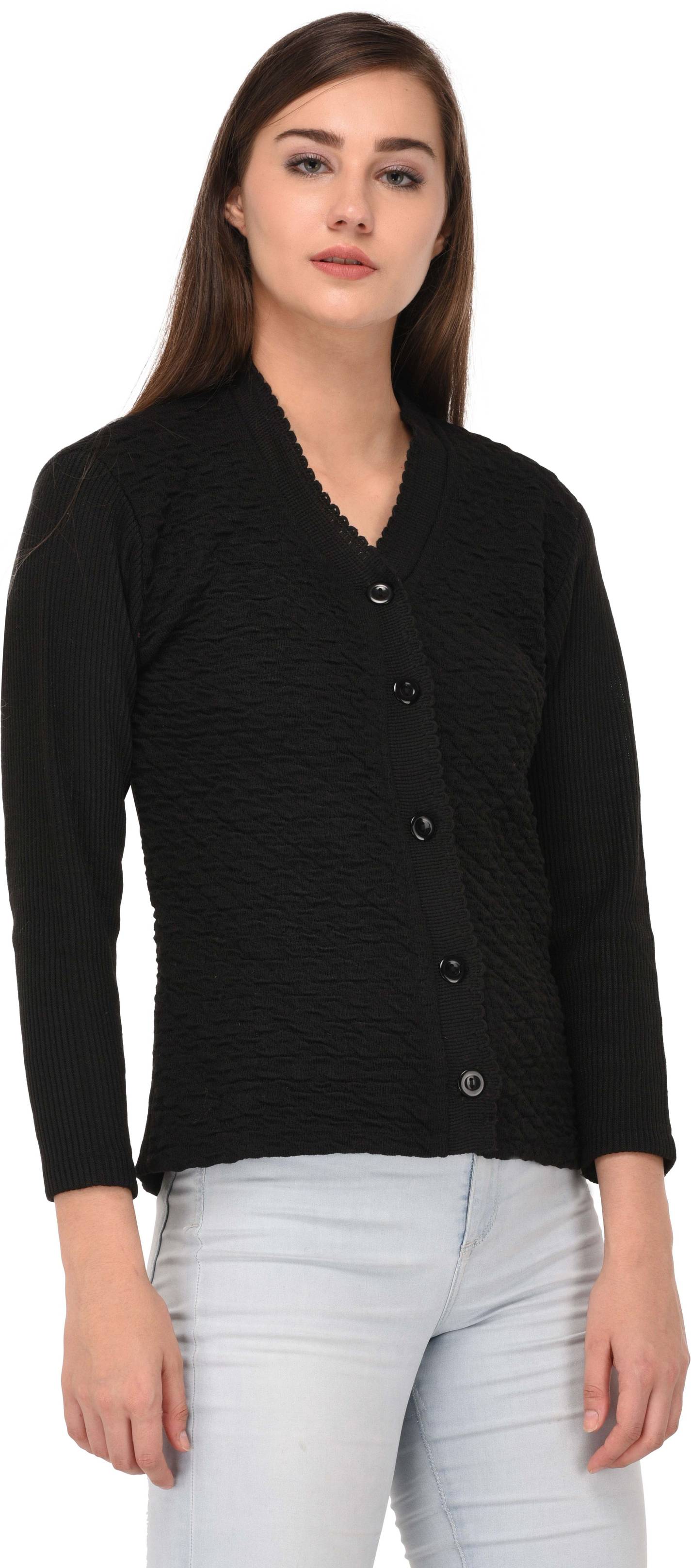 eWools Solid V Neck Casual Women Black Sweater