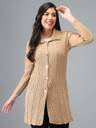 eWools Woven Collared Neck Casual Women Beige Sweater